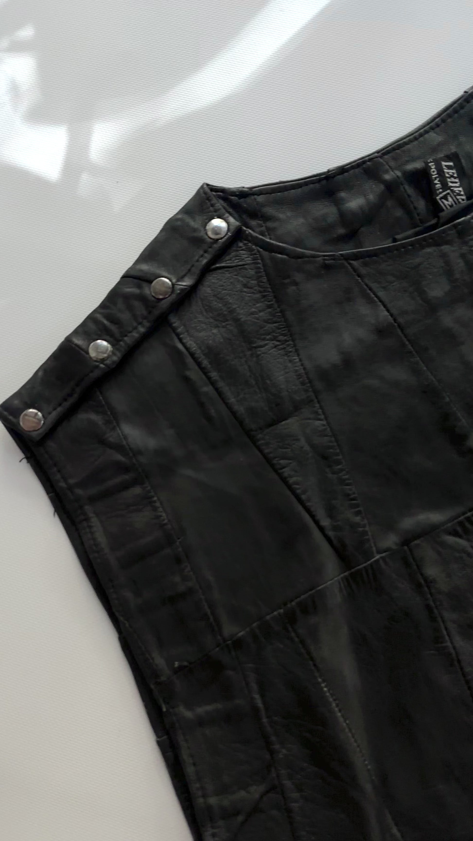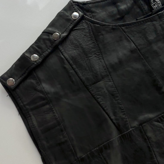 80s Black Patchwork Leather Waistcoat