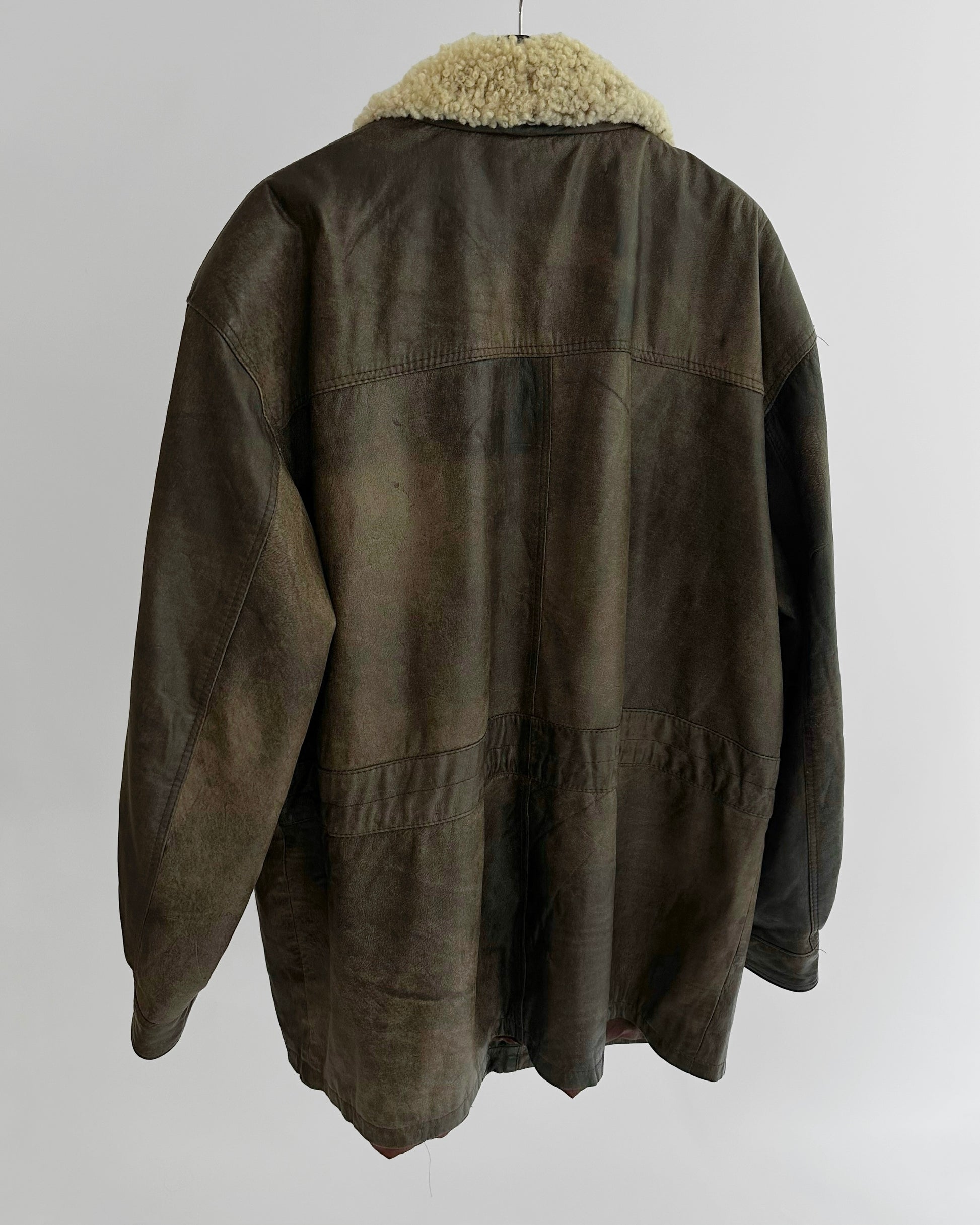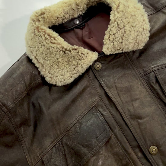 80s Brown Cowhide Leather Field Jacket – Detachable Shearling Collar