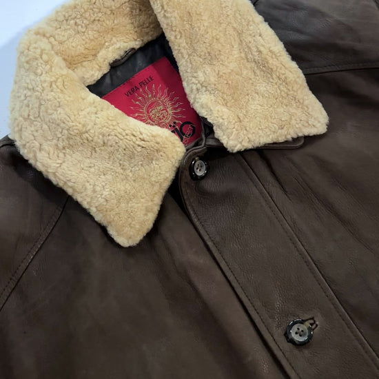 80s Brown Leather Jacket w/ Faux Shearling Collar