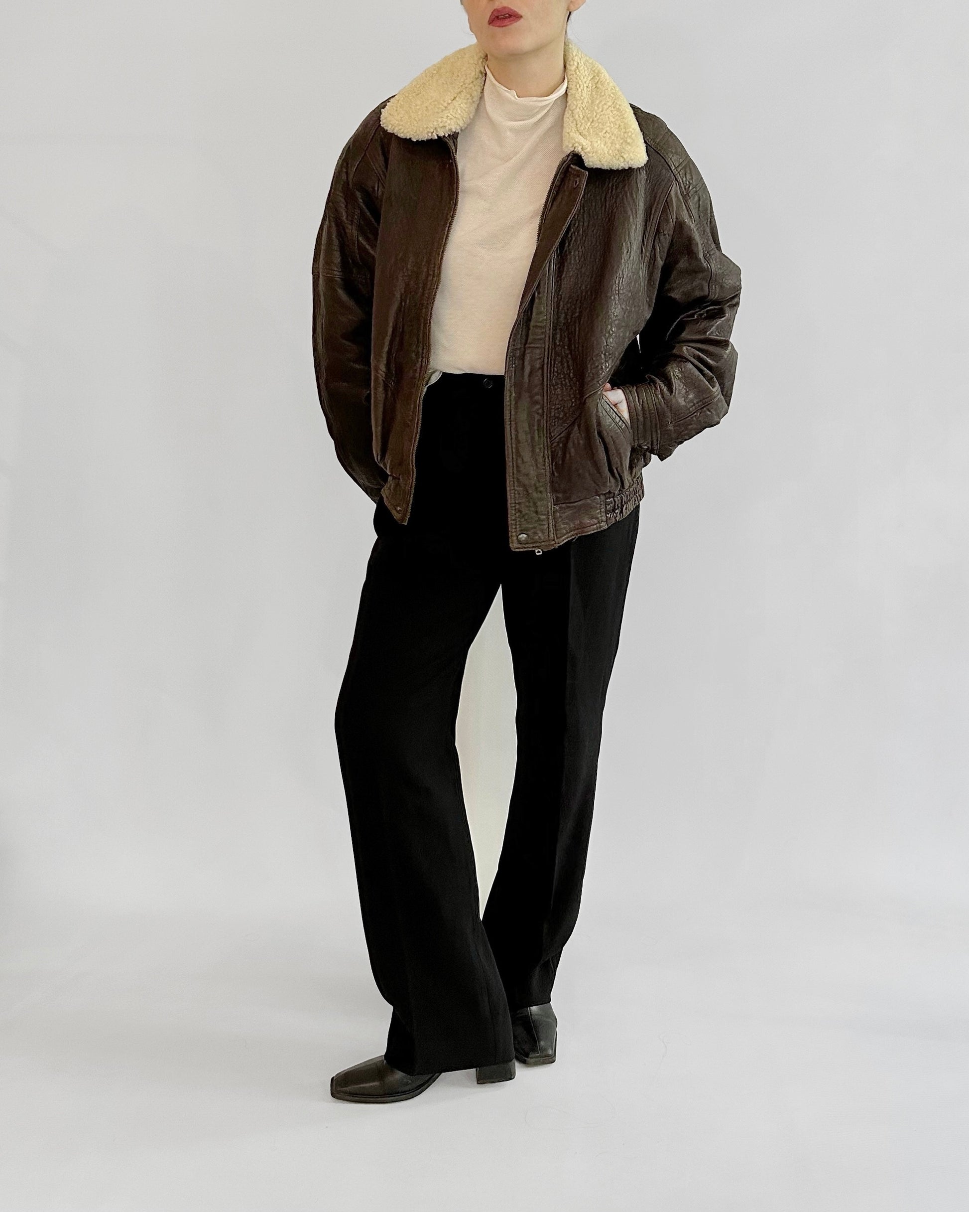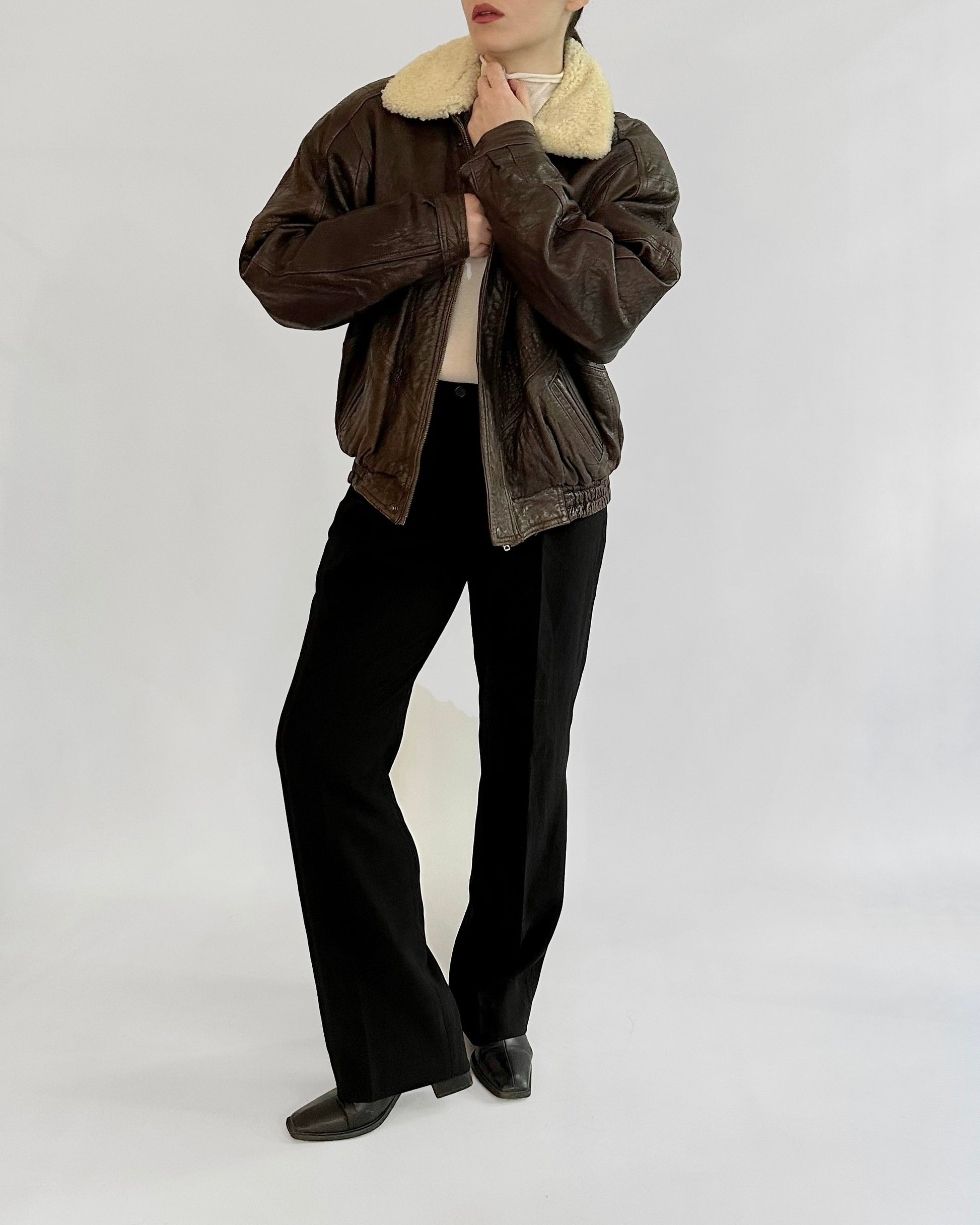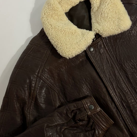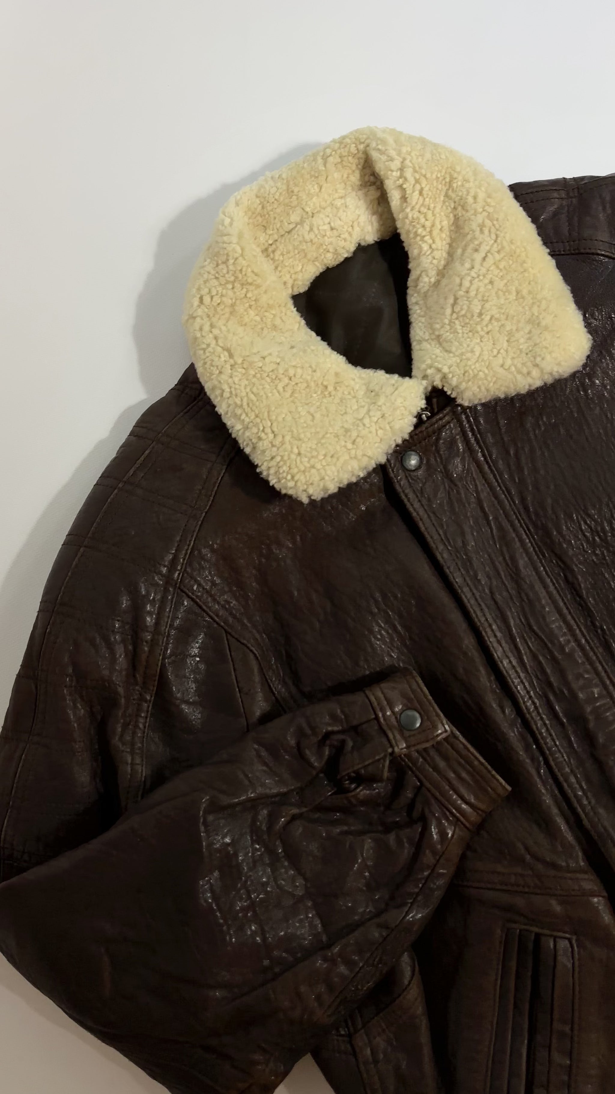 80s Brown Sheepskin Leather Bomber Jacket – Made in Spain