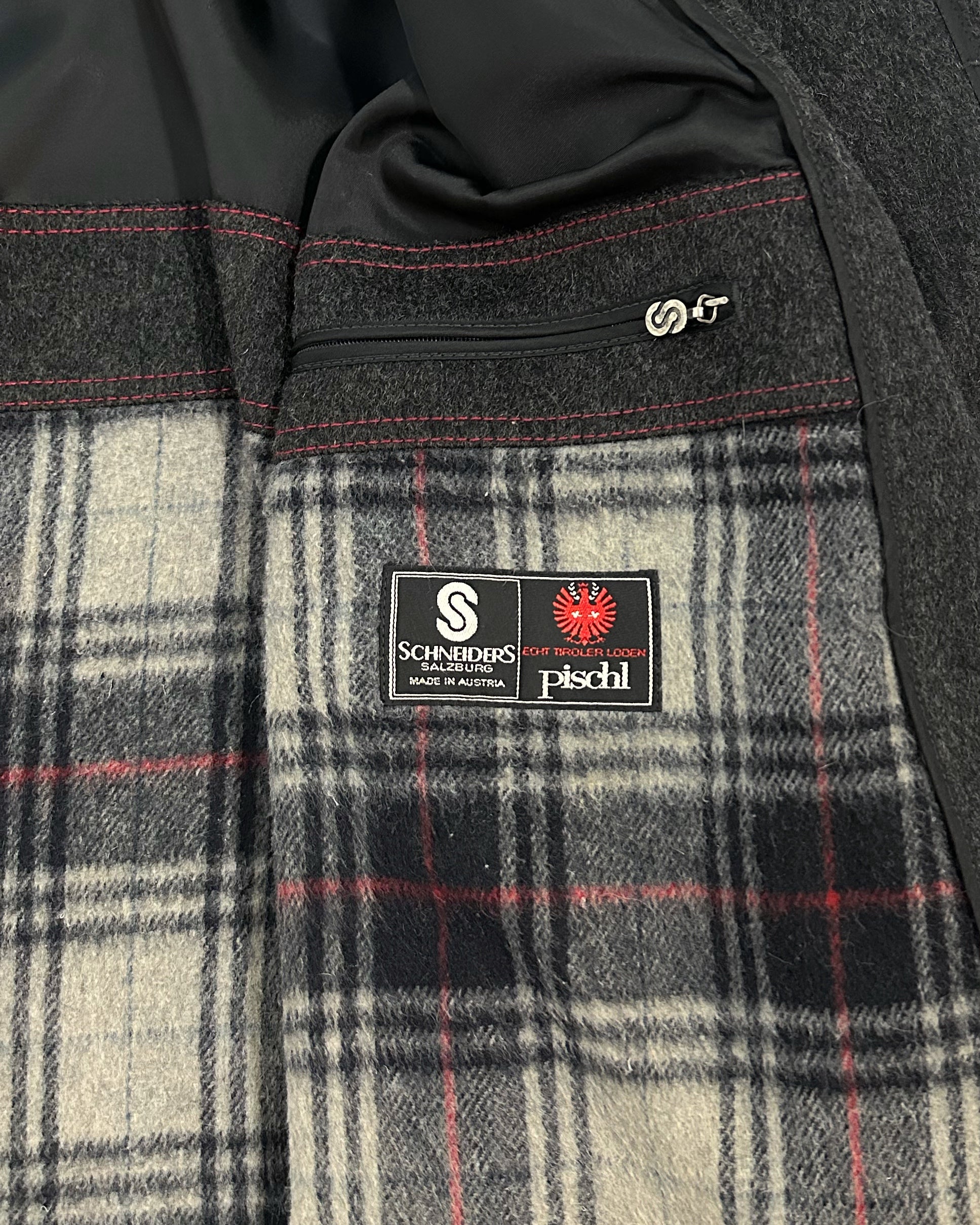 Vintage 1980s virgin wool grey loden coat by Schneiders Salzburg, made in Austria.