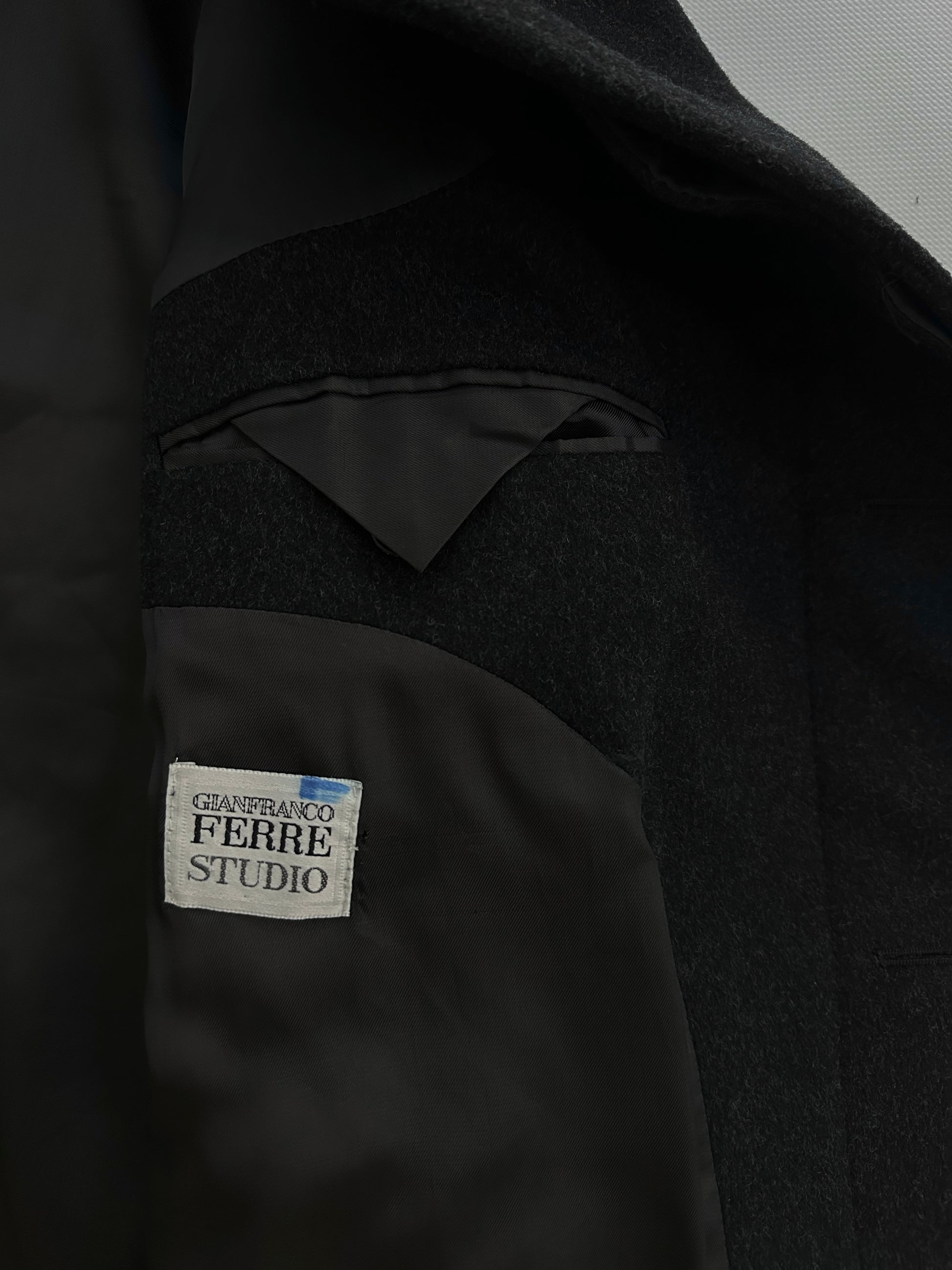 90s Gianfranco Ferré Charcoal Wool and Cashmere Coat